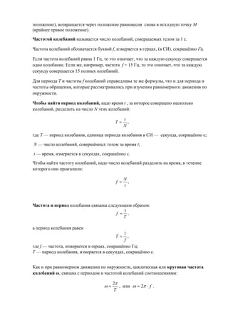 МЕХАНИЧЕСКИЕ КОЛЕБАНИЯ период колебаний частота колебаний